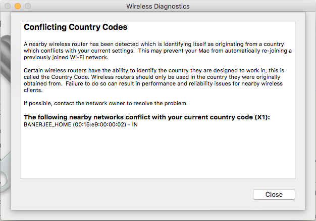 Conflicting Country Code Error on Wi-Fi