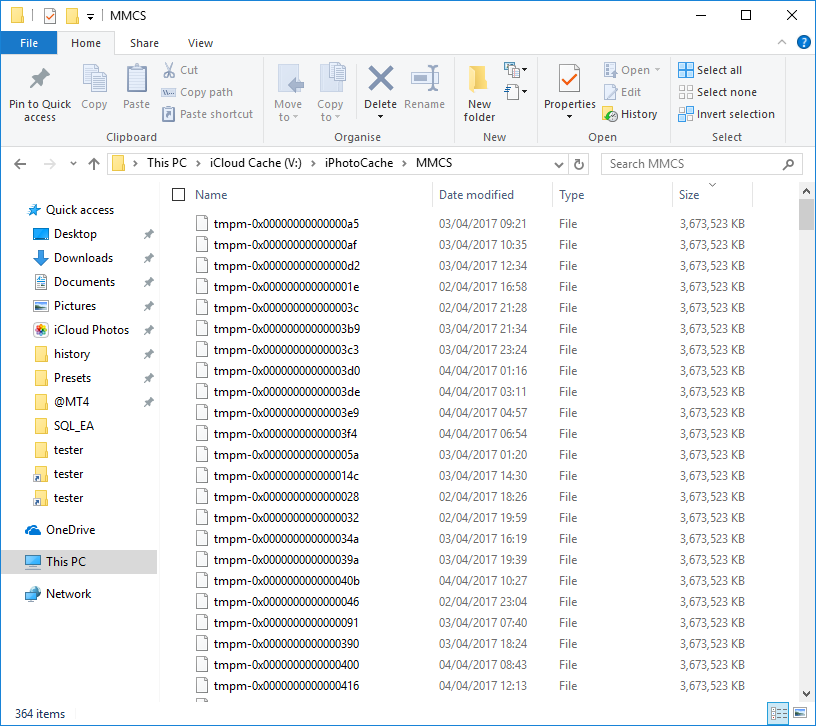 During downloading of the year 2016, at some point in the process the cache files are no longer deleted. As an example in my case: first... there are some 60 cache files present, which later become 146 files. In the end these files take up 17 GB (whereas the actual photos inside the whole 2016 year only consists of 12 GB physically). I notice that the ICFW client says at almost the end of the process: 8 items to download. And it stays there for a long time. I decided to leave the PC on the whole night... so 8 hrs later I return from sleep and ICFW says: everything downloaded at 04:54! Great (although... leaving your PC on the whole night for 8 items to finish should not be needed in the first place!). I check the MMCS folder and it still contains 174 (!!!) cache files that take up 20GB on my harddrive. (As I stated... the photos themselves from 2016 only take up 12 GB physically)