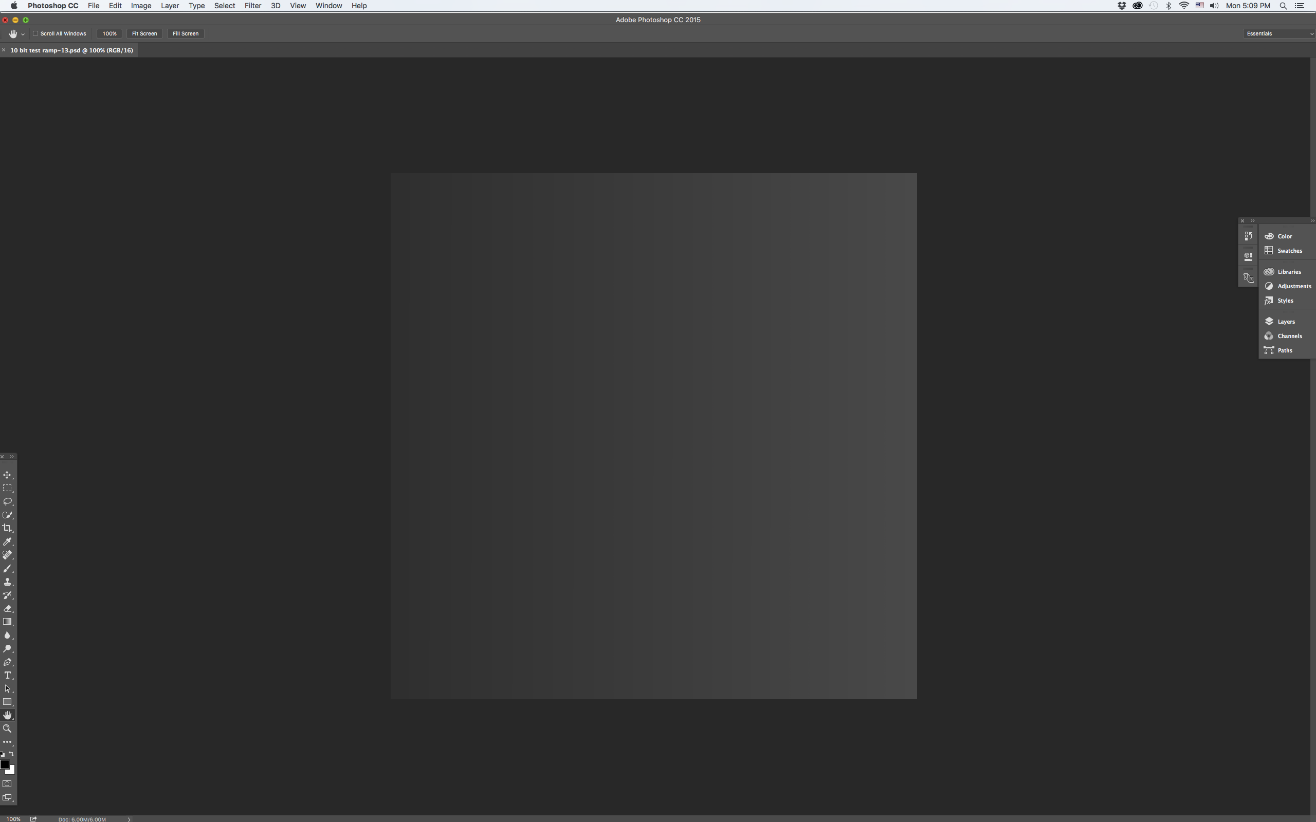 The paragraph above is from the following piece - (no title) . There's no date (or author's name) given. There are references to 2015 in the piece, but I don't know when the section above was written. I have heard others say that the Mac Version PS CC's 10-bit color is not true 10-bit color, but is the result of dithering. Windows versions of CC have true 10-bit color evidently. Perhaps dithering explains my results in CC. Once again, as I related in my previous post the test ramp opened in Preview with SwitchResX "Billions of Colors" selected was smooth, but when opened in Preview with "Millions of Colors" selected was distinctly banded.