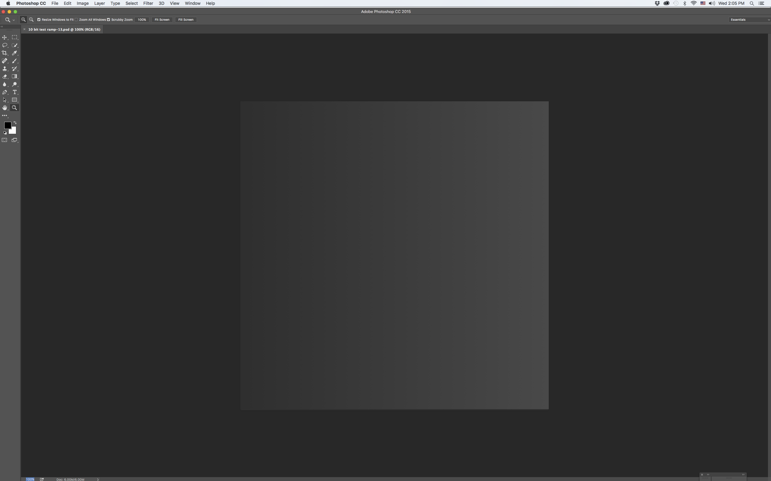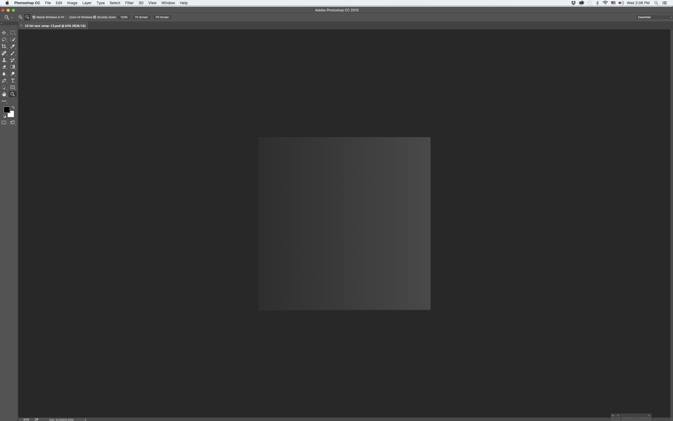 Okay. Back again after installing a trial version of PS CC for Mac, I opened the same test ramp file from my previous post from my Finder in CC with"Billions of Colors" selected in the SwitchResX menu, 30-Bit Color (ARGB2101010) showing in system report. The opened file was completely smooth- no banding. Then closed the file, selected "Millions of Colors" in SwitchResX menu, 32-Bit Color (ARGB8888) showed in system report, opened the same ramp file from my Finder again, but the ramp still looked completely smooth! I then closed the file, and un-clicked 30 Bit Display in PS CC's Advanced Graphics Processor Pane. With 30 Bit Display un-clicked in that pane the same test ramp showed clear and distinct banding in CC whether I had "Billions", or "Millions of Colors selected in Switch ResX , or what the Mac system report showed , prior to opening it. Makes me wonder if the "30-bit color " in CC for Mac is for real, or the result of dithering, as some have suggested.-