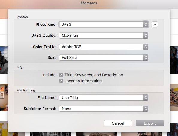 how can I export a full sized, full resolution photo from Photos?