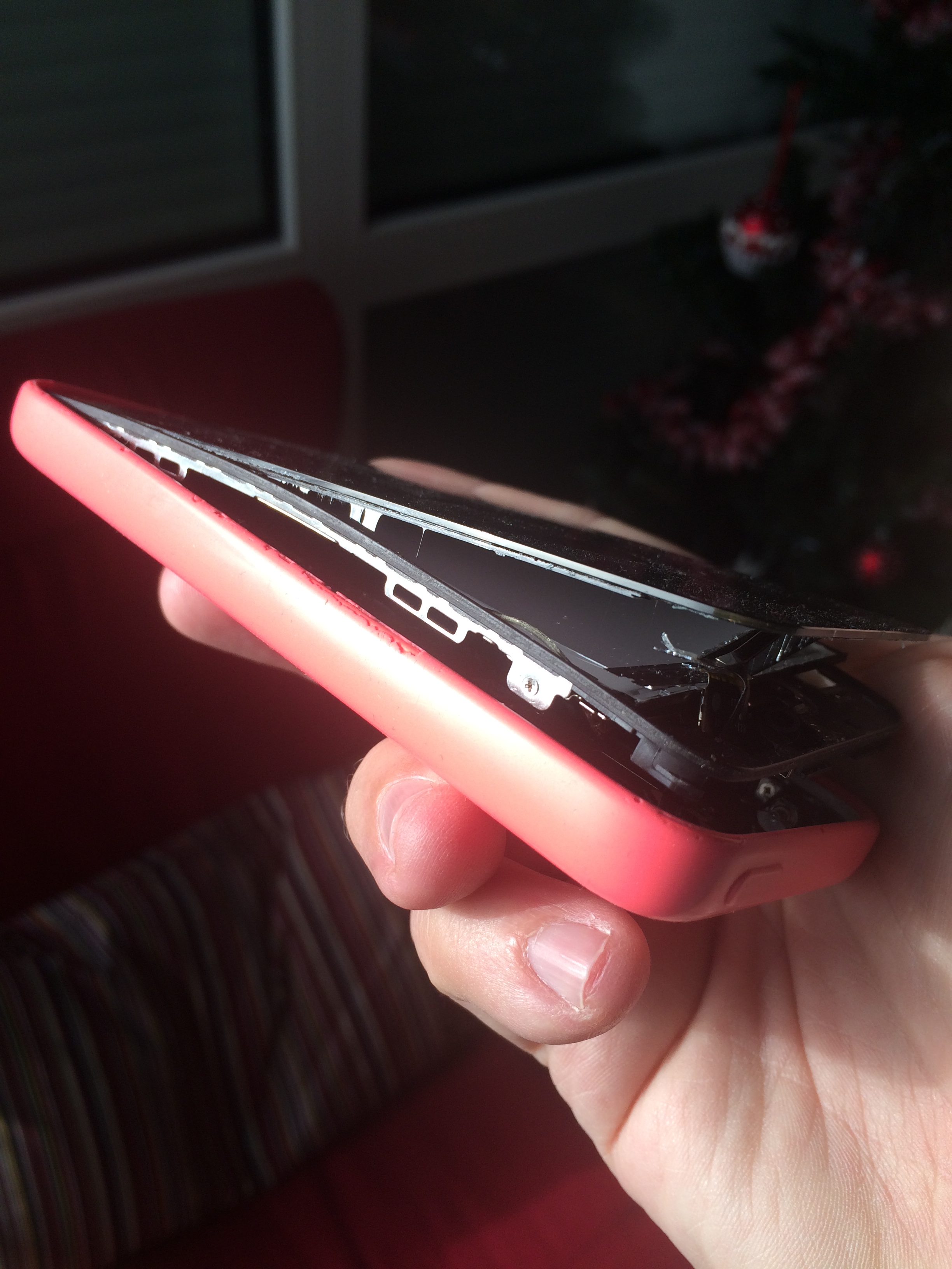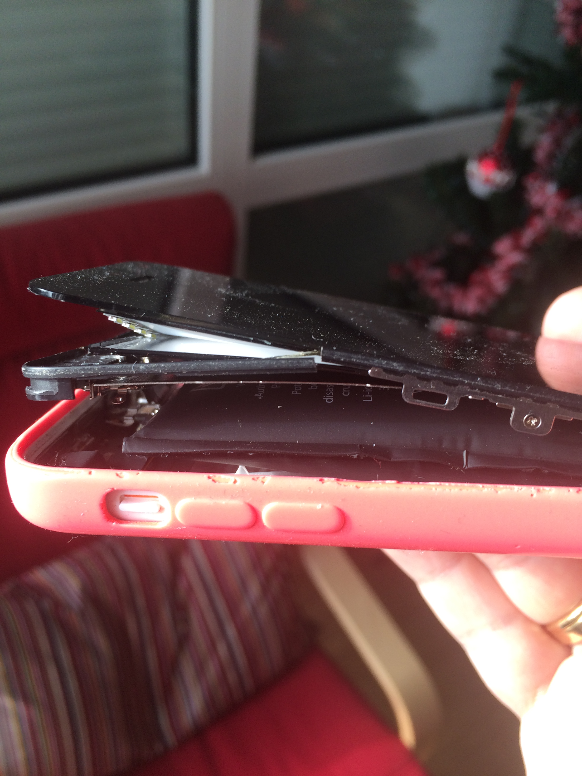 After my wife get a new iPhone 6S we let the iPhone 5c at our bedside table as not in use, but suddenly, after a couple of day there it was completely opened, I mean, looks like blow up. This is the first time I saw something like this, I have been using iPhone since 4S and had all them since 4S and this is really weird. It was turning on but we were a little bit afraid to charge it to see if all the rest is working. Pictures are attached below. So let me know if any of you had this before.