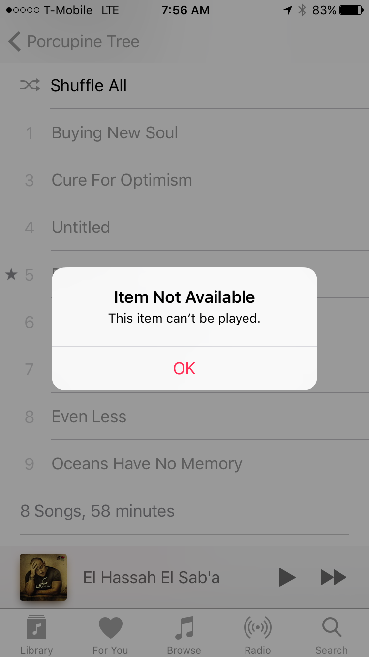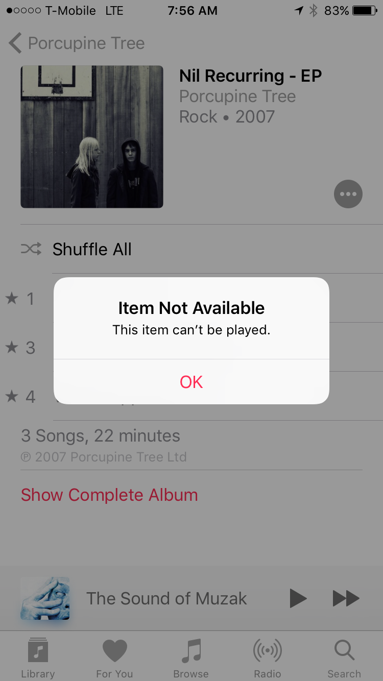 Item Not Available: Apple Music error