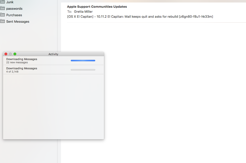 10.11.2 El Capitan: Mail keeps quit and asks for rebuild