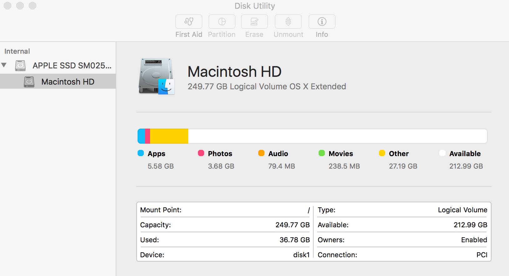 0: Apple_HFS Macintosh HD +125.0 GB disk1