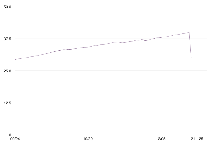 I have three graphs created at the moment. The first one has points ranging from 0 to 25, and the y-axis shows a minimum value label of 0 and maximum value label of 30. So far so good.