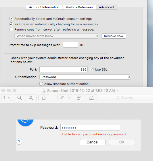 I have 8 email accounts in Mail - ranging from FatCow and GoDaddy hosting to Gmail and Yahoo - SENDING from the actual server is/was messed up in about 1/2 of them since OS X 10.11.2 was installed. Now this - "Can't connect to the account" issue....