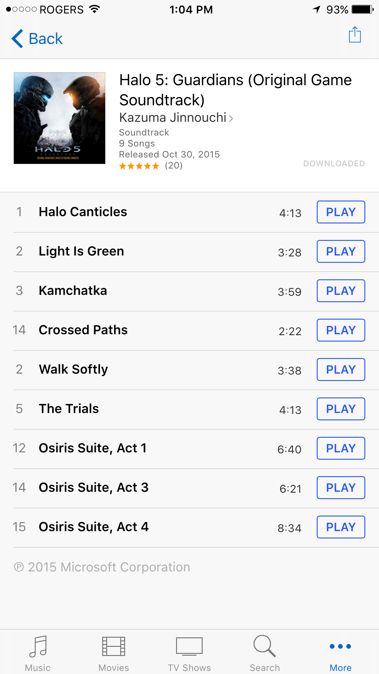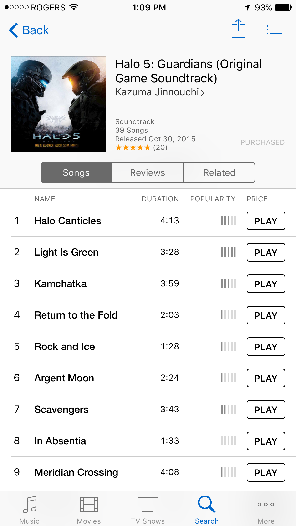 On my end, my Halo 5: Guardians album only shows 9 tracks out of 39 tracks under My Purchases, but when I look it up in the Store, it shows I have purchased all the tracks. (I have purchased the complete album, so all the tracks should be under Purchased/My Purchases: Music/Kazuma Jinnouchi (H5: Guardians artist).) I've tried connecting my iPhone and syncing my purchases on my PC, but that didn't fix the problem.