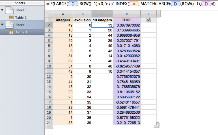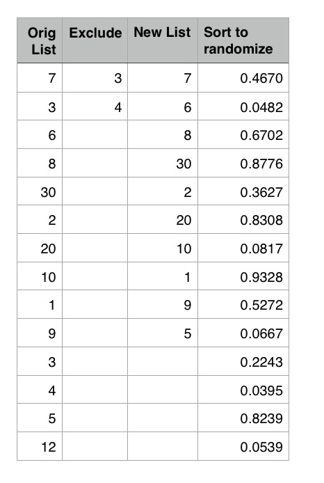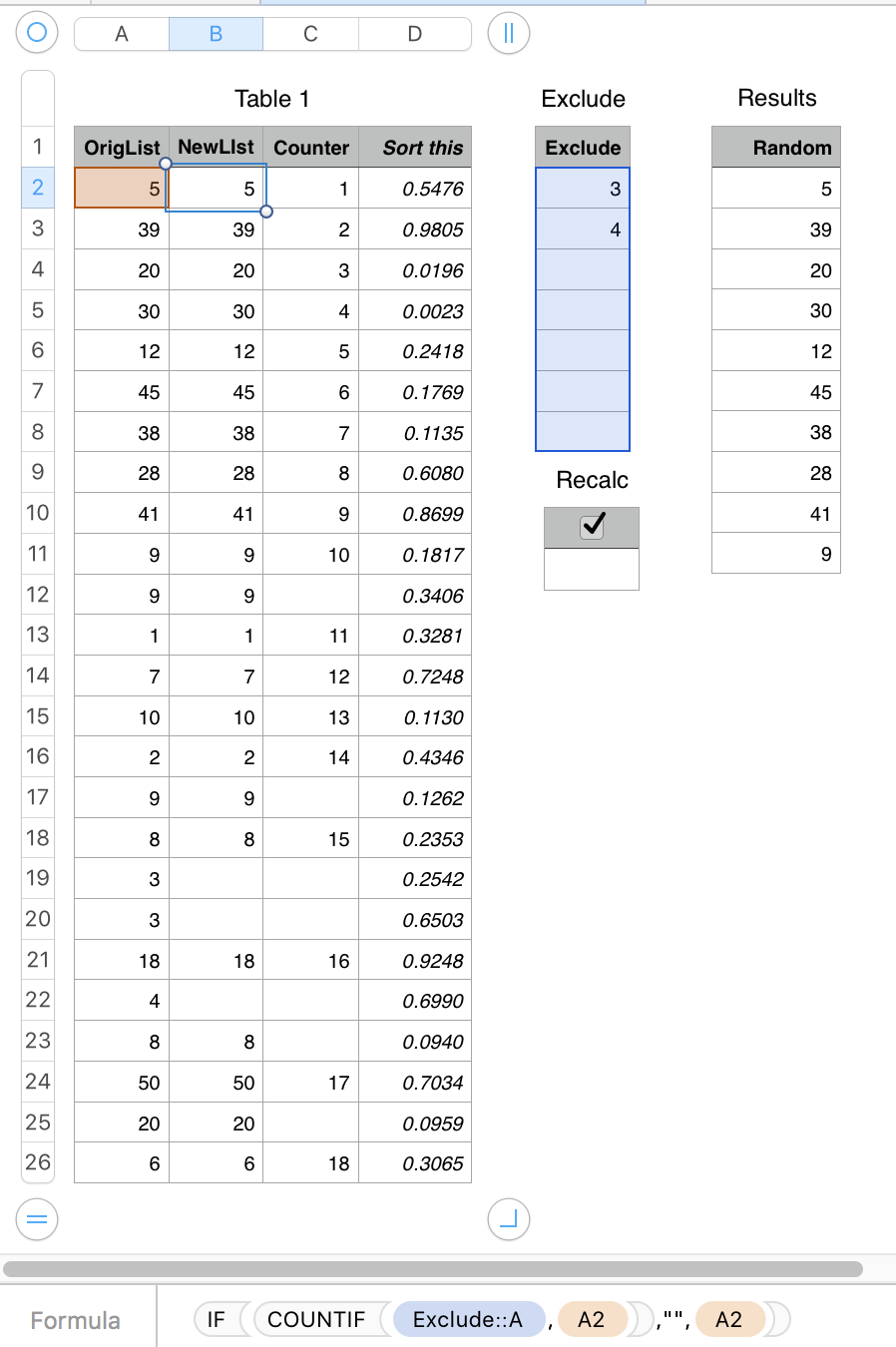 NOTE to SG, Hiroto, et al: Numbers's automatic recalculation feature provides a strong argument for using a script to drop the paired values into a table, rather than to depend on formulas involving RAND() to create them, then leave a stable list as the result. Over to you, Script Guy III; may the Force be with you! 😉