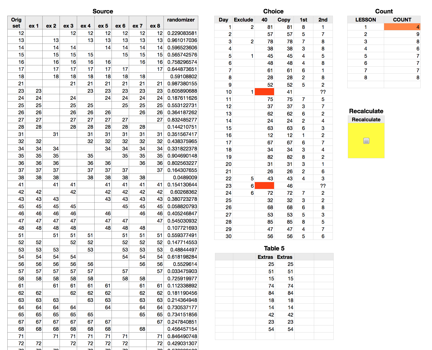 3. Deleted the Copy column on Choice. It was there only to check that excluded pairs contained the lesson that was to be excluded on that day.