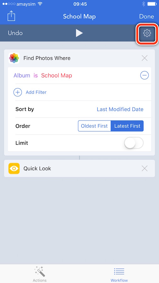 - Tap the cog icon (see first screenshot) to go into the settings window (second screenshot below):