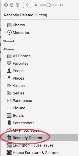 I have been deleting duplicate photos (another question for another time) from my iMac. When I do this sometimes a window pops up with a progress bar. The window says "Moving to recently deleted". I can't find this "Recently deleted" folder. It's not in "Finder". I tried opening "Trash" but it's not there. Where might it be. I need to recover some accidentally deleted images.