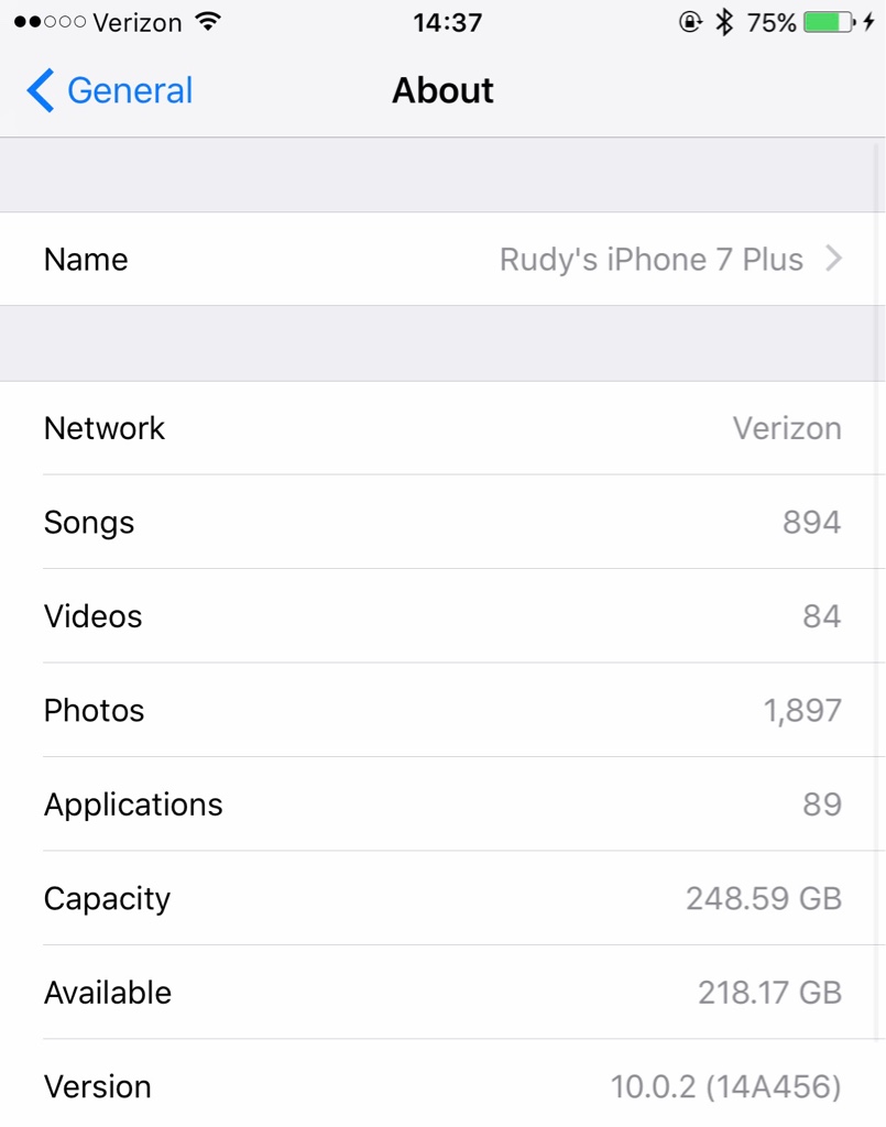 Can you post a picture of what you see when you navigate in the Settings App to General->About?