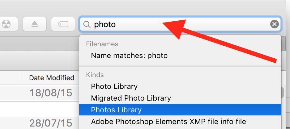Open a Finder window and type "photo" into the search field.