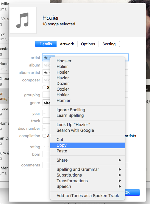 You are now going to do edit multiple items at the same time. Change the artist's name to "aaaaaa" and hit "OK".