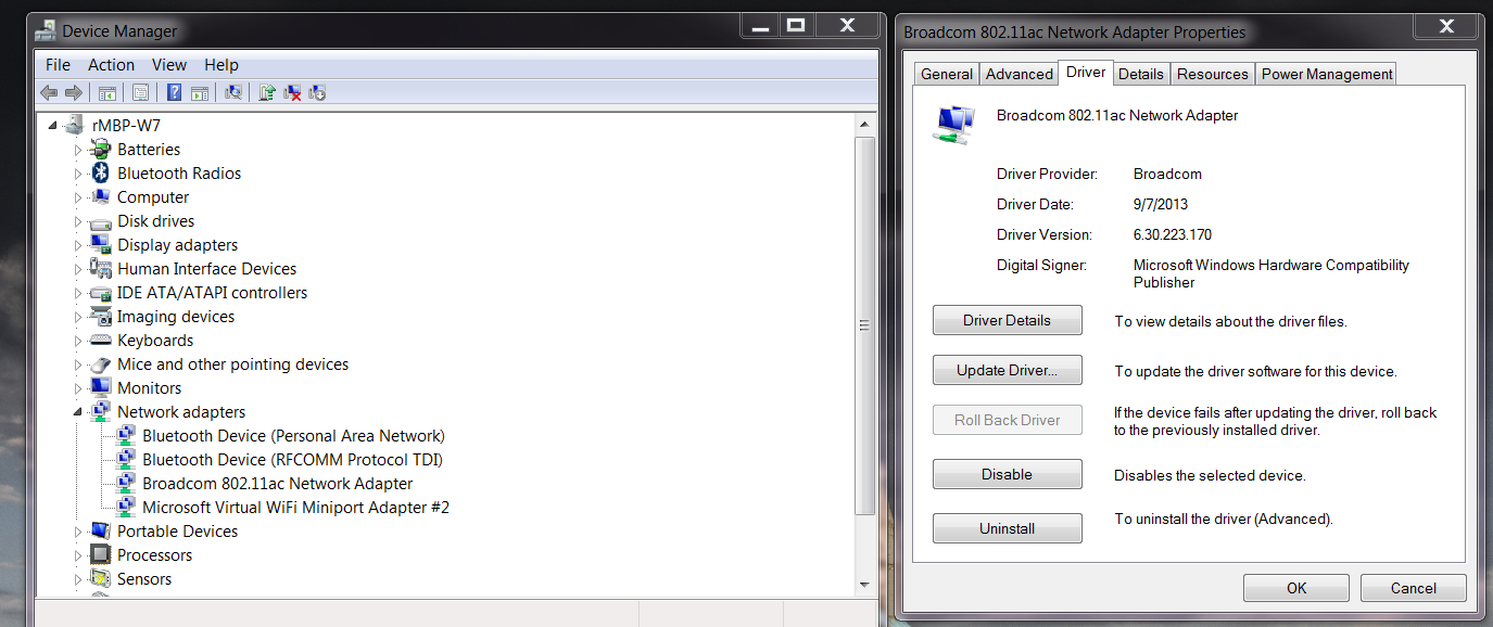 I also provided the screenshots of test with no driver installed with the same result (diplicated Apple Airport device instance ) here Re: Windows 10: BCM43xx S3 resume firmware initialization problem (MacBook Pro 15 mid 2014)