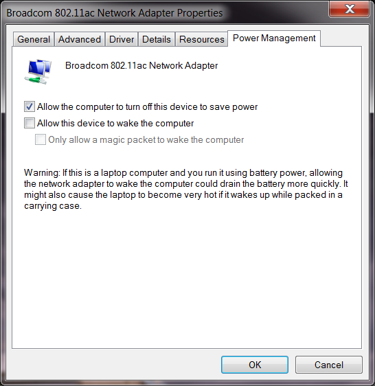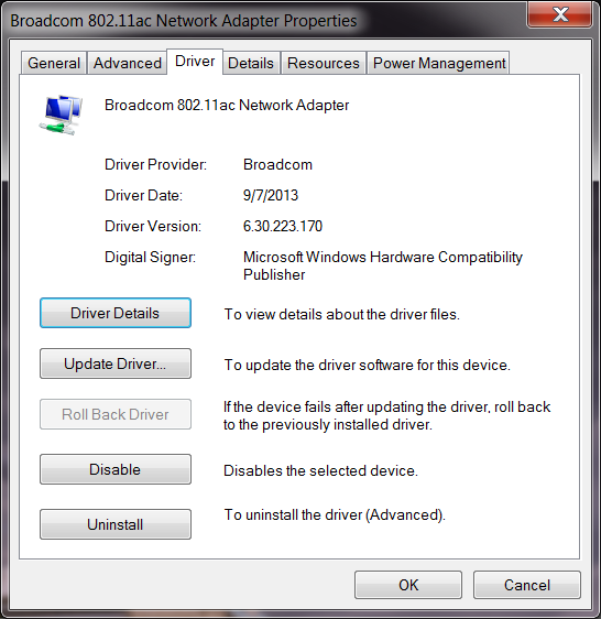 1. Using Device Manager completely uninstall Broadcom 802.11ac network driver with option "Delete the driver software for the device".