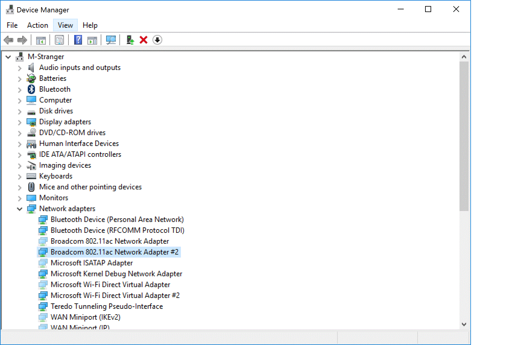 1. My Device Manager configuration prior to first Sleep test (you have to select the "View->Show hidden devices" menu option!). As far as I assume it looks like yours if you would have deleted the "Broadcom 802.11ac Network Adapter #2" device instance which is hidden on your screenshot. I can Reboot/PowerOn/Hibernate my computer many times to see the same picture, but not Sleep.