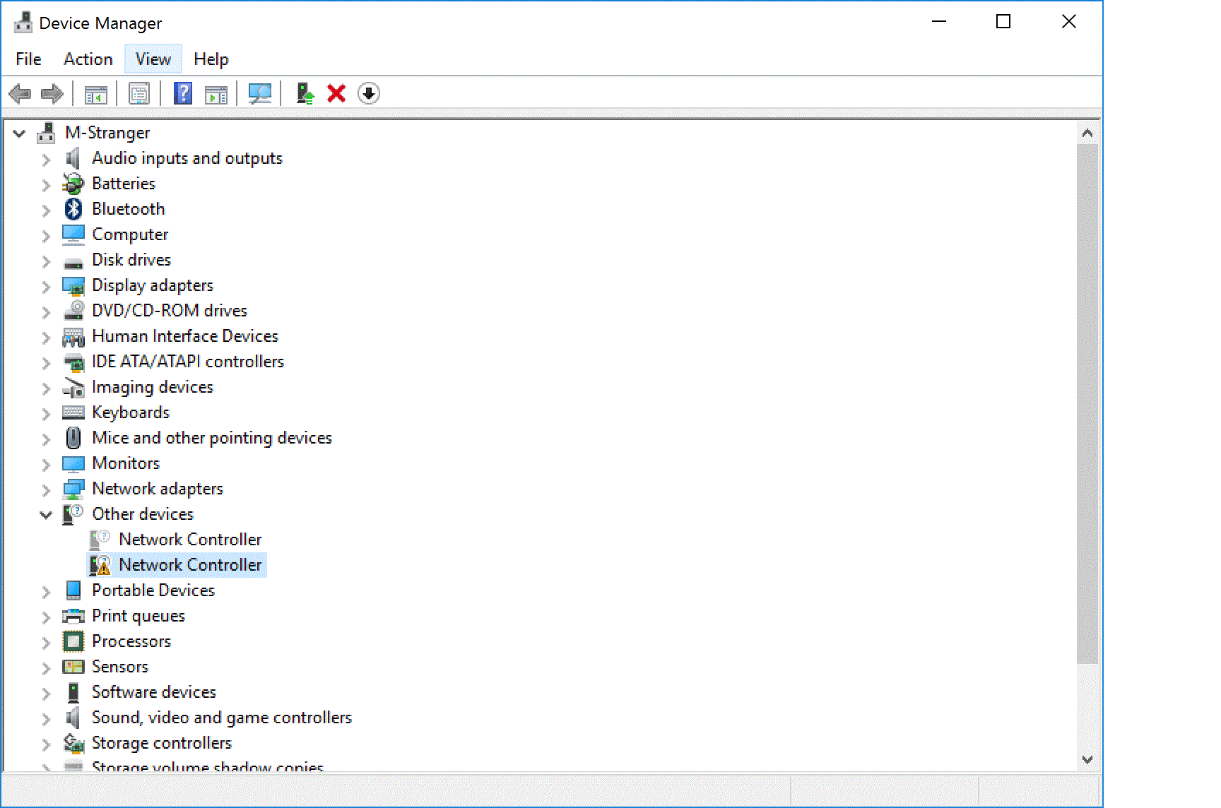 2. Press "Scan for hardware changes" button to detect device instance named as "Network Adapter" and select "View" -> "Show hidden devices" from menu, so you can see only one "Network Adapter" device.