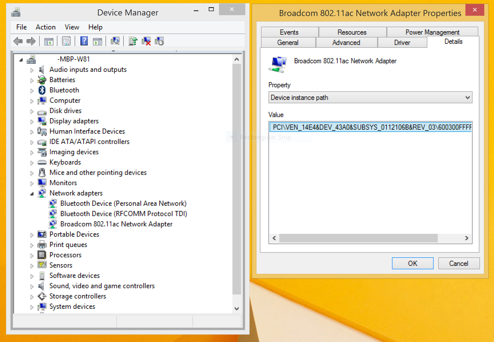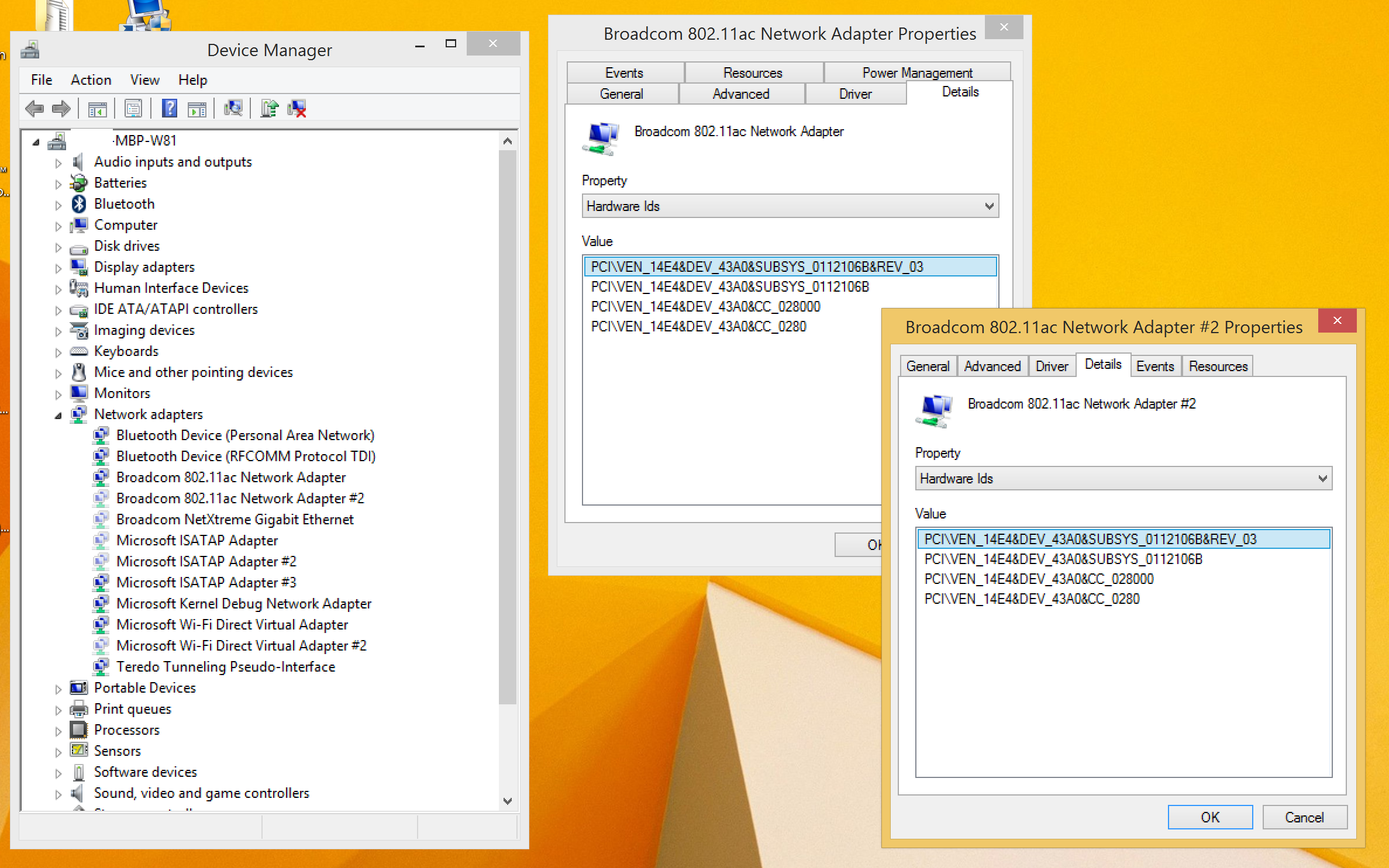 Hardware ID after Sleep (PCI\VEN_14E4&DEV_43A0&SUBSYS_0112106B&REV_03) reported: