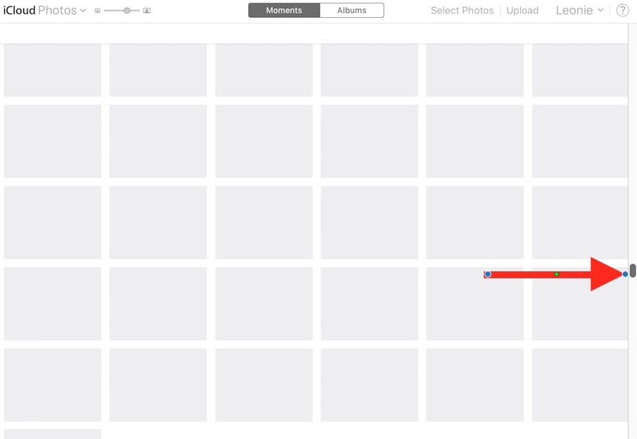 When trying to look at my photos using icloud there is no scroll bar. So how can I go through my photos?