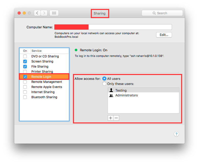 while adding and removing users to Sharing / remote login