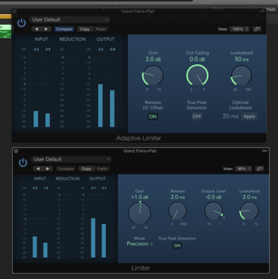 Note: Using Adaptive Limiter adds latency when the Lookahead parameter is active. The effect is typically used for mixing and mastering previously recorded tracks, not while recording. Bypass Adaptive Limiter while recording."