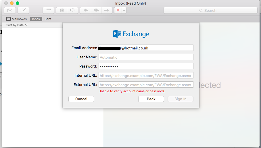Adding a Hotmail.co.uk email address to Mail in El Capitan