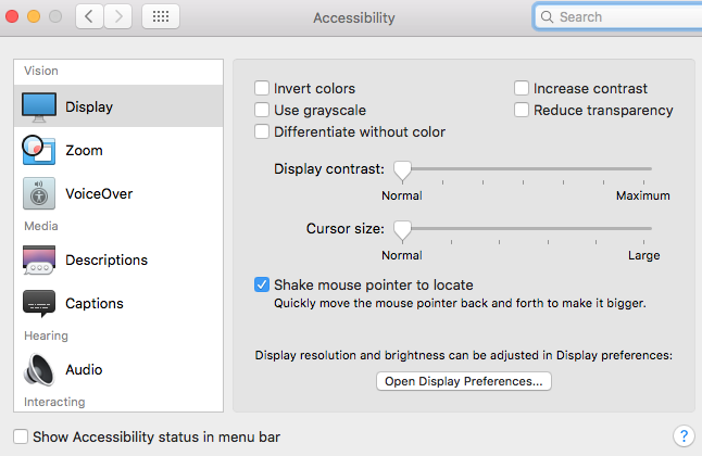 Accessibility feature offers few options like Increase contrast and Reduce transparency.