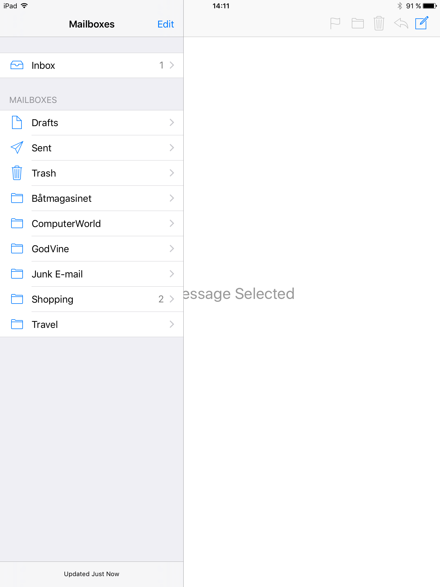 I however dont have a full screen view with the listings of mail messages and options.... there is a picture also of how the folders are shown, in the left third of the screen... i can not list these folders nor the content of one folder on the full screen... (or i dont know how to do it)