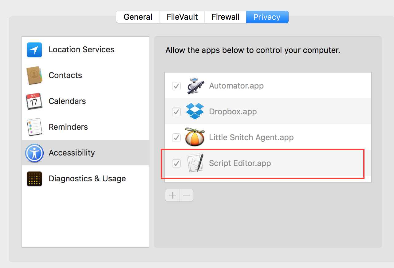 Also, make sure Script Editor is checked at System Preferences > Security & Privacy: