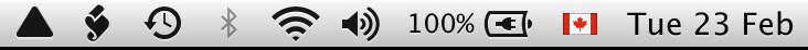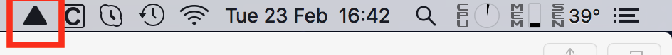 Running either Safari or Numbers, with several other apps in the backgrouns, when I noticed a black equilateral triangle with rounded corners and no markings in the leftmost position of the 'icon' menus at the right end of the menu bar.