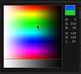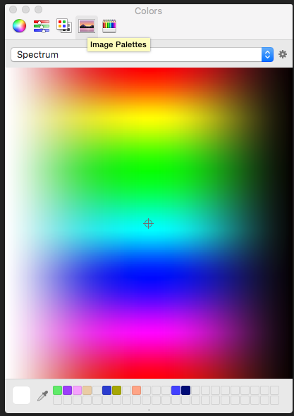 The system color picker can be a color wheel circle, sliders, "tags" or tabs or swatches (however you want to refer to them), spectrum, and colored pencils (48 colors). There are five small icons at the top of the picker window. Pick the system you want to use. If you select the sliders picker, you will have the option of grayscale, RGB, CMYK and HSB. You can also "load" the squares at the bottom with your "favorites".