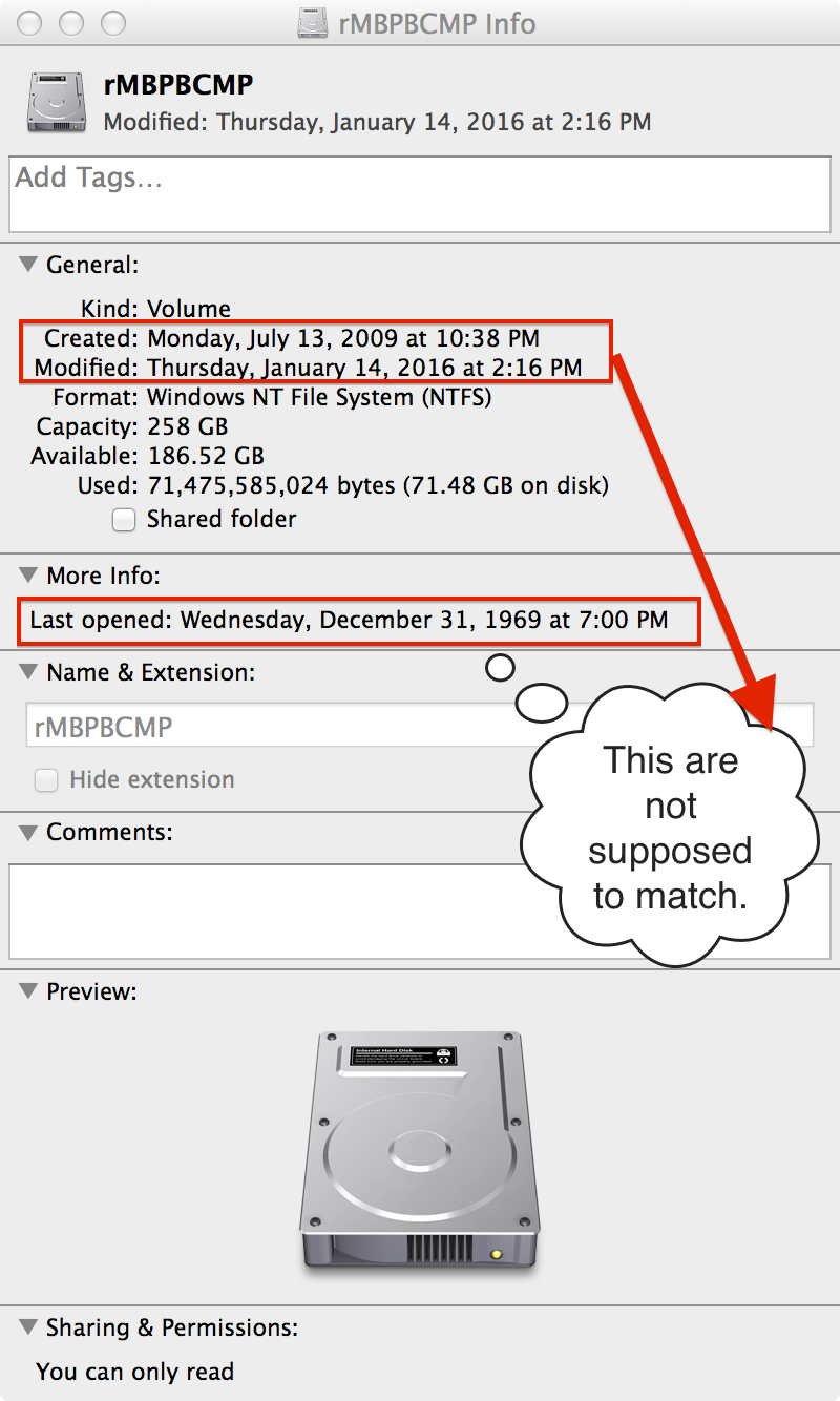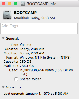 xattr -d kMDItemLastUsedDate /Volumes/BOOTCAMPThis would not serve any purpose just for curiosityđ