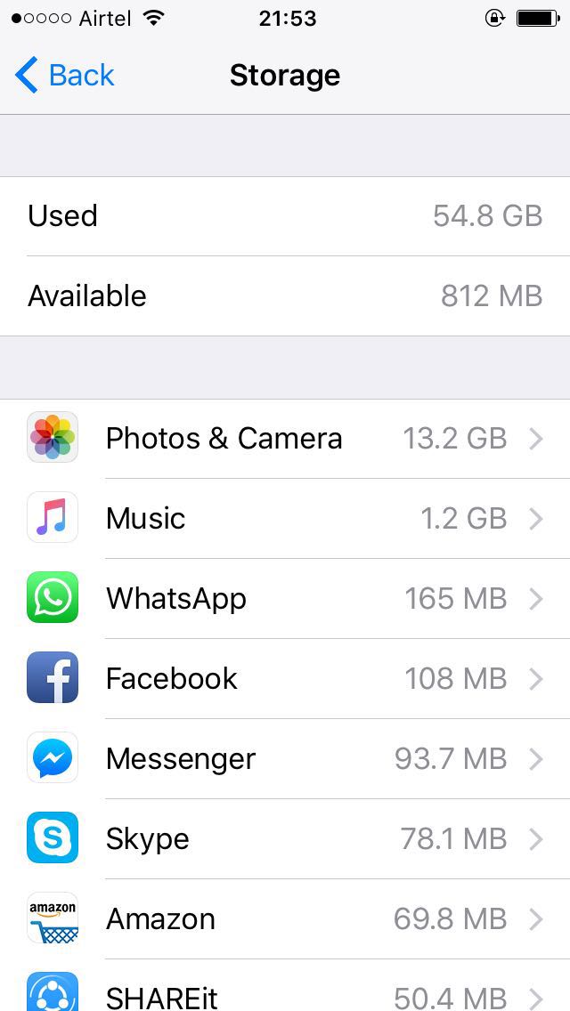 Iphone 5s 64GB..Memory full though there are no more than 20GB of photosn all.? where is 35gb?