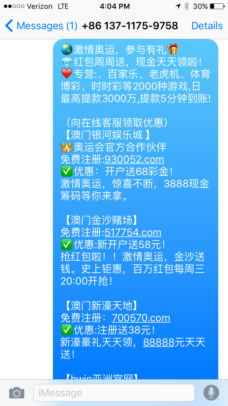 i am being charged $300 from my service provider as a result of these iMessage (which resulted in global sms) sent out to china