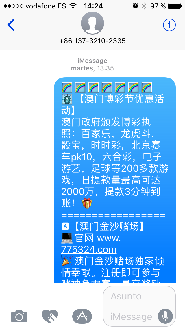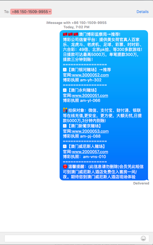 And this morning I saw 35 messages were sent out to +86 No. from my phone through iMessage