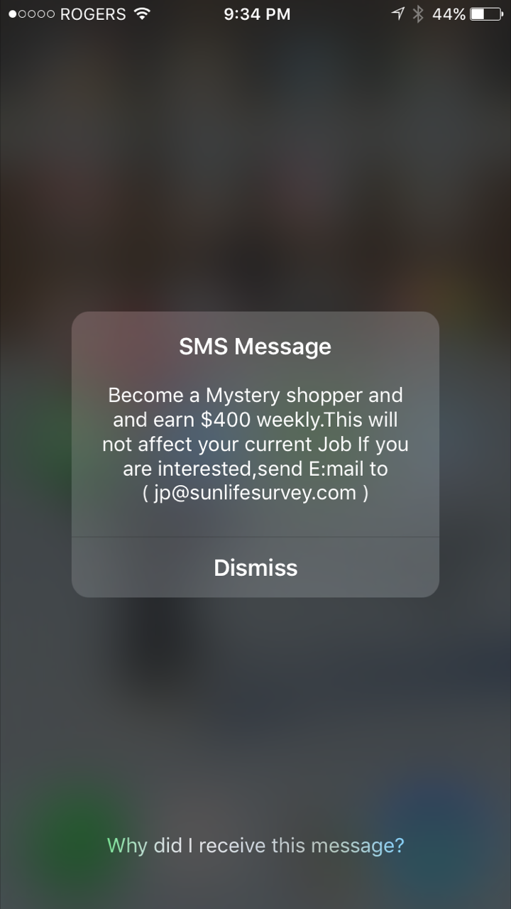 mystery shopper scam - sms message