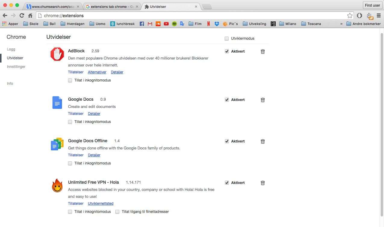You installed one or more variants of the "VSearch" trojan. Please inactivate them as follows. This procedure will leave a few small files behind, but they have no effect, and trying to remove them all would be a lot more trouble than it's worth.