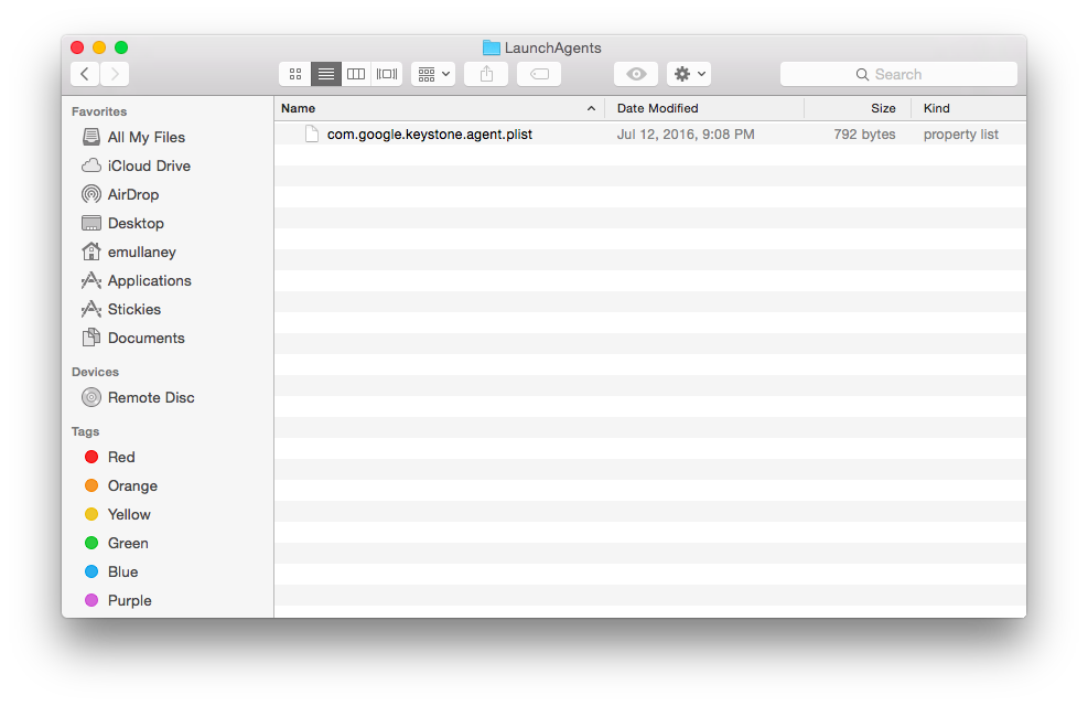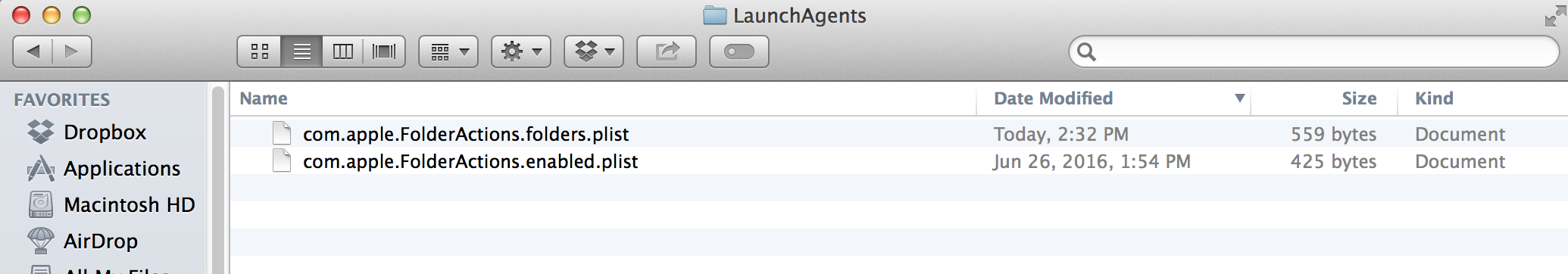 A folder named "LaunchDaemons" will open. Press the key combination command-2 to select list view, if it's not already selected.