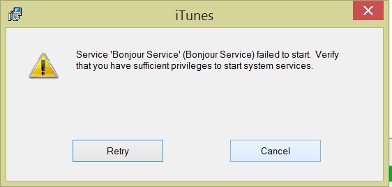 I tried opening iTunes and received an error saying components were missing. So, I tried updating to the latest version through Apple Software Update, but received an error while the installation was at the "starting services" part. The error (picture attached below) states: "Service 'Bonjour Service' (Bonjour Service) failed to start. Verify that you have sufficient privileges to start system services."