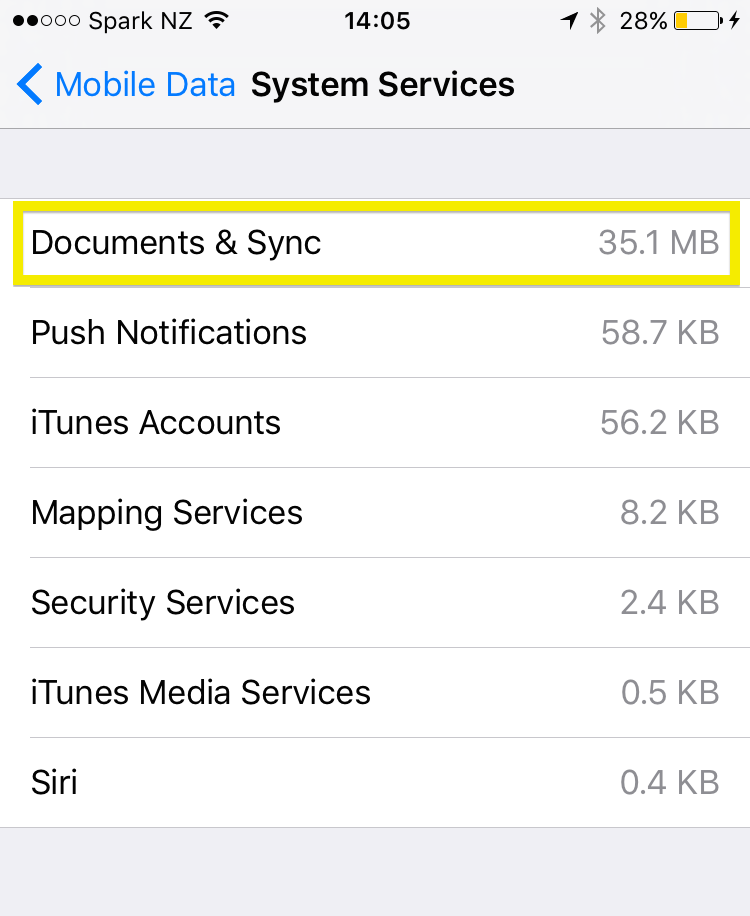 Excessive mobile data (cellular data) usage by Documents & Sync