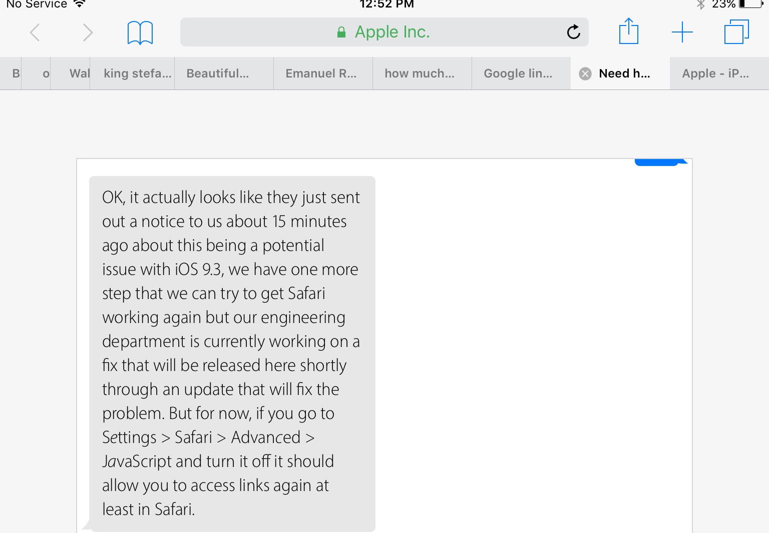 "Oh wow, I understand how inconvenient and concerning it is to experience so many problems after updating to iOS 9.3. So you are experiencing an issue with accessing links within Safari after the update. I always expect updates to go smoothly, and this is definitely unexpected behavior. You have definitely made a great choice by contacting Apple Support today, you are in the right place for help!"