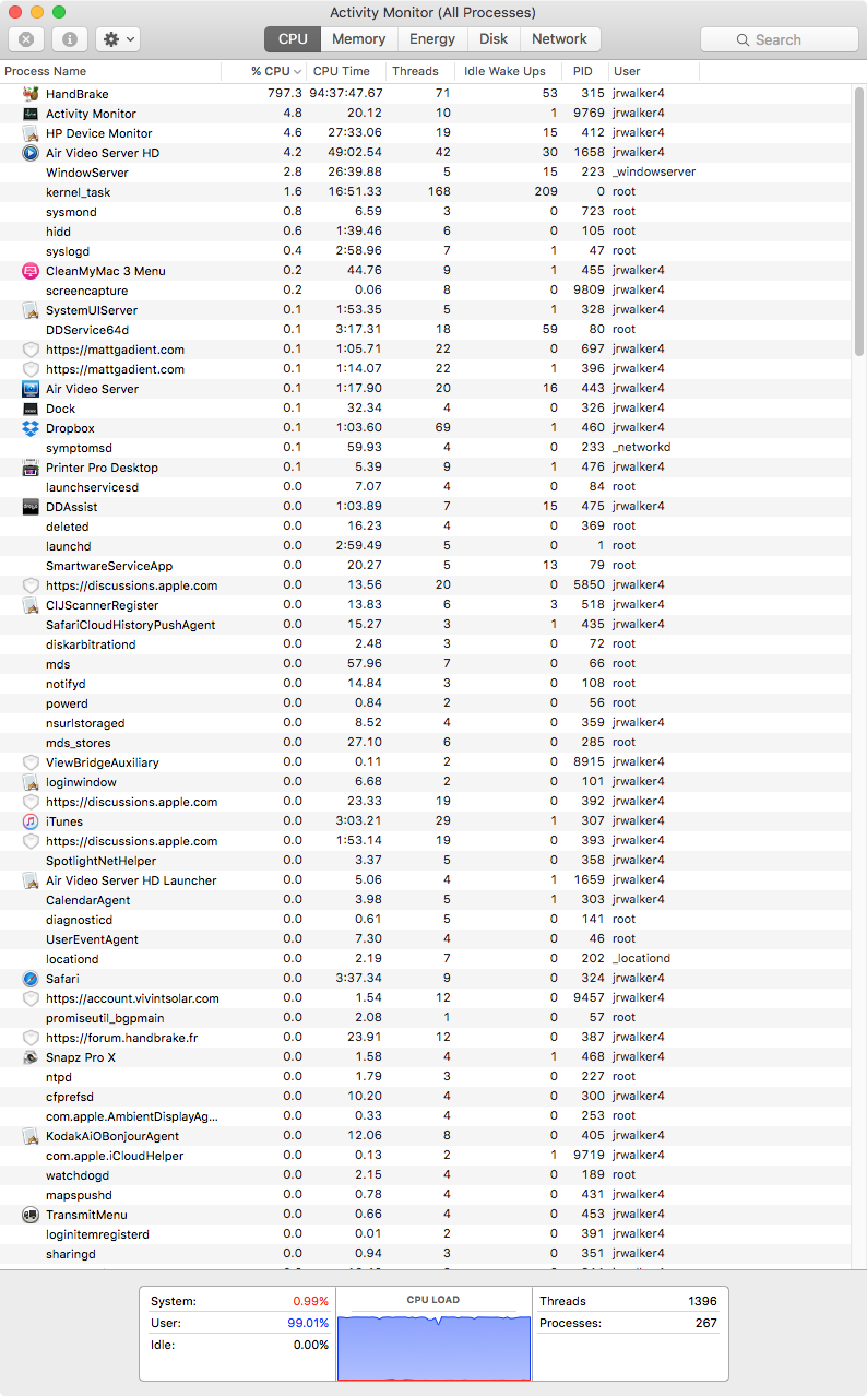 Look for any app or process names that appear in red any time an app seems to freeze up or seems to be having a problem during use. In some cases the issue is easily found—e.g., Time Machine, iDVD encoding, Internet down/uploading activities are in progress, etc.—while in other cases the system may be trapped in some operation than you may have to manually force to quit. This doesn't normally happen very often but is a good place to check when strange things happen but the Finder doesn't appear to be having any obvious problems.