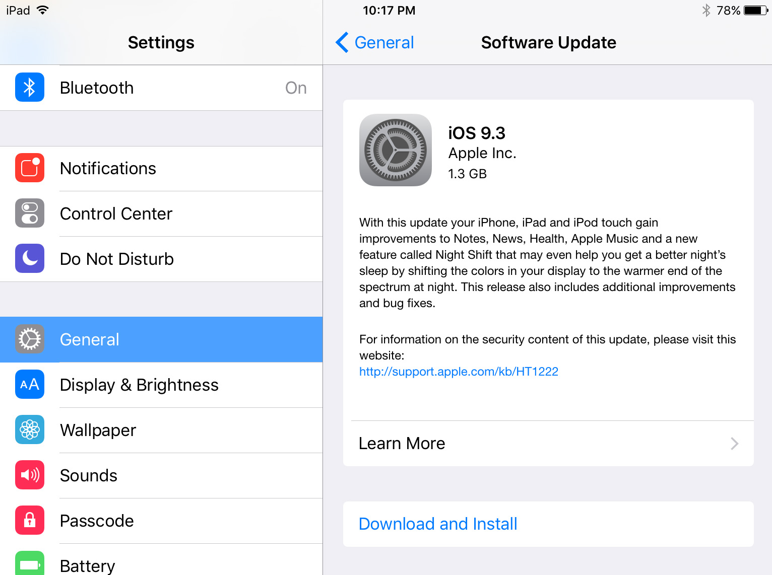 THis morning I opened my Ipad Air and see I have another version of IOS 9.3 already downloaded, ready to install. I'm a bit sary of doing this since my Air is working fine. Contacted a friend with an Air who was on her Pro and as soon as she plugged in her Air, it proceeded to download a neew version alsi even though she too has 9.3 already installed on it. So, any advice, install? It will have to overwrite the current 9.3.