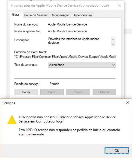 When I try to install, it gives me all the time this error "Service "Apple Mobile Device Service" (Apple Mobile Device Service failed to start). Verify that you have sufficient privileges.