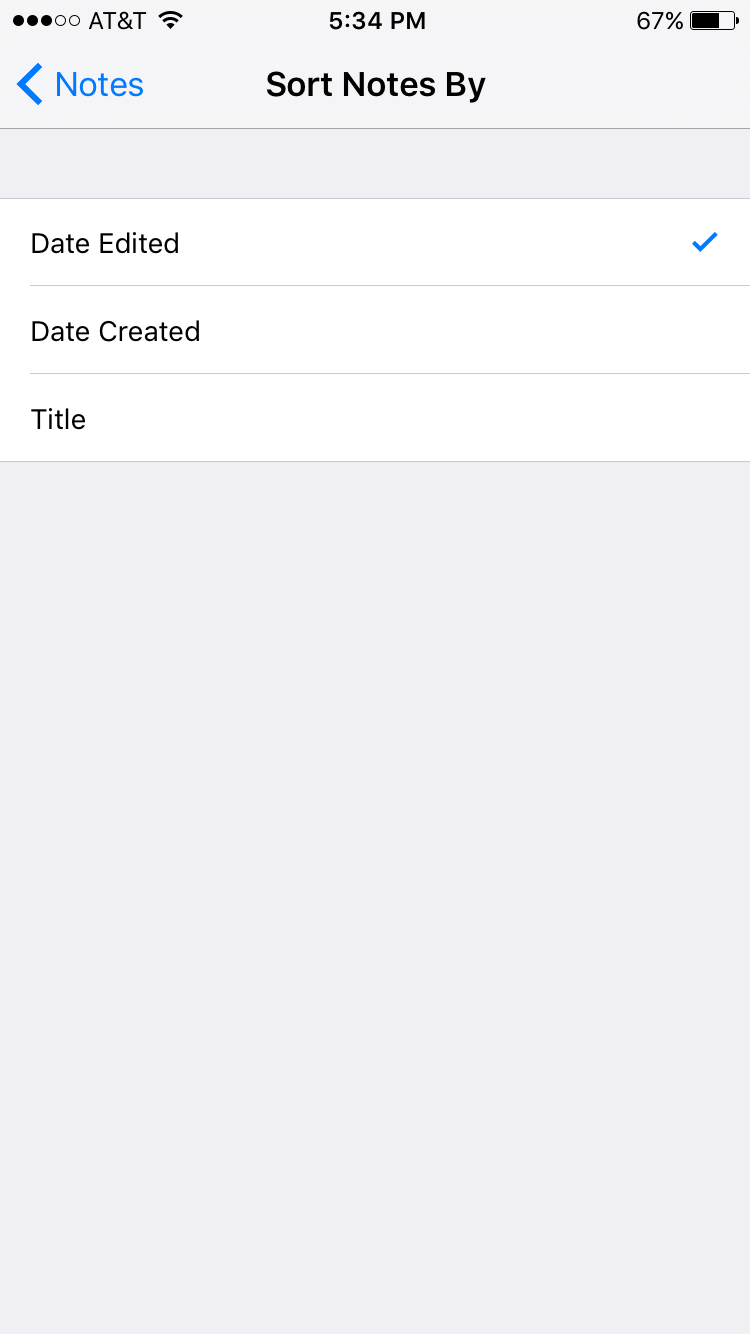 Prior to IOS 9.3, Notes on the iPhone plus doesn't sort alphabetically. I now have IOS 9.3 on iPhone plus. Notes sorts alphabetically in Outlook 2013. So how do I sort it on the iPhone?