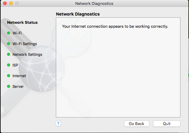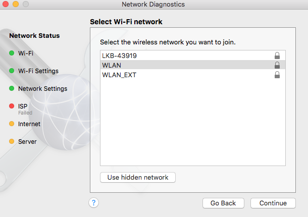 Step 1: When my WiFi disconnects, I usually use Network Diagnostics to fix it. The first three points are always green, ISP is sometimes yellow, sometimes red and the last two points are always yellow.