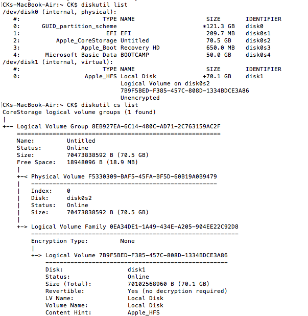 Emmanuels-MacBook-Pro-3:~ emmanuelgee$ diskutil cs list