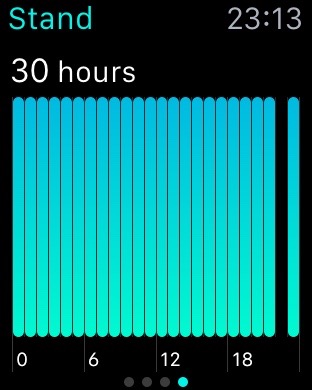 At 5pm the watch already showed 25 hours of "Stands", more than one day.
